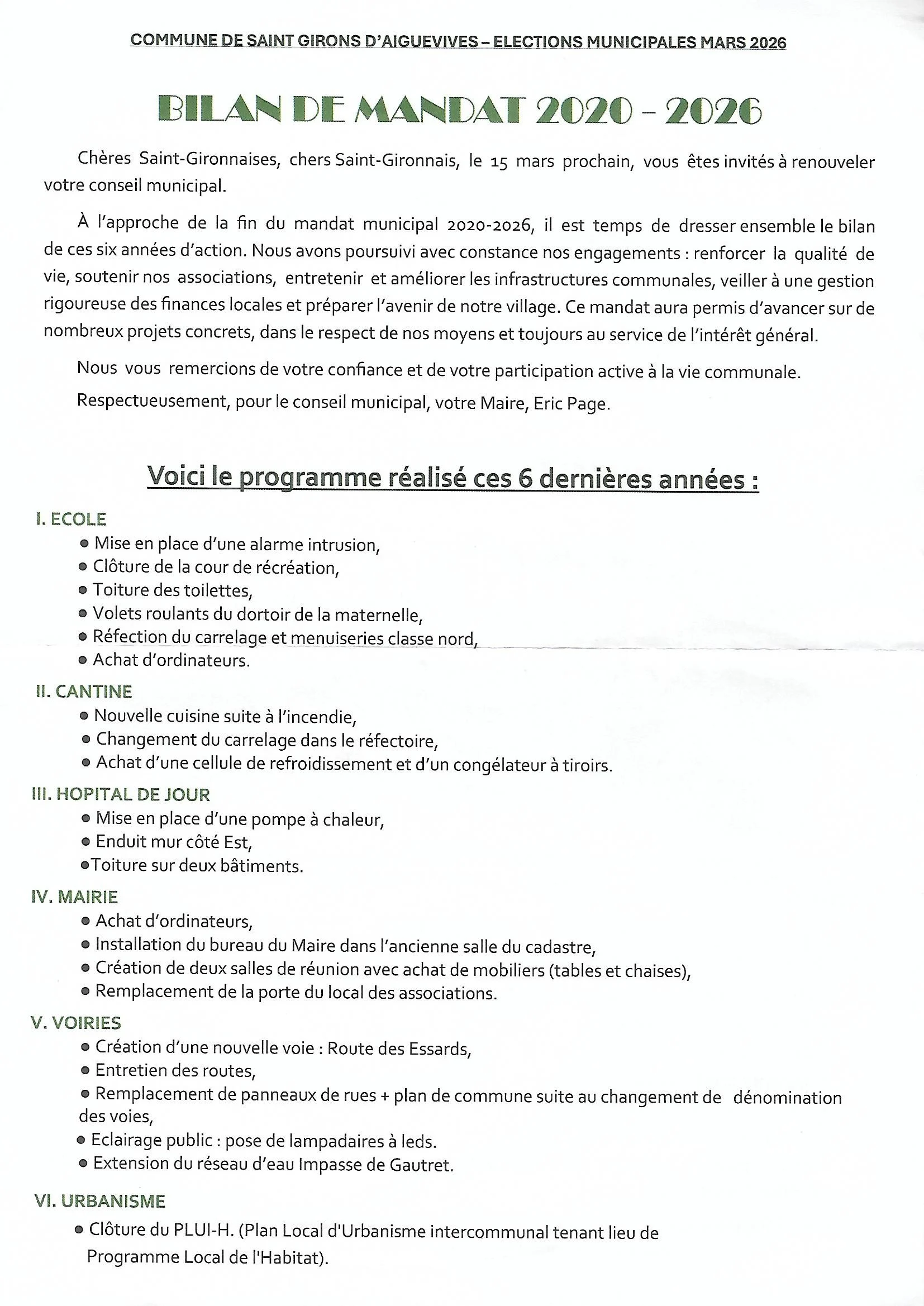 Bilan mandat 2020 2026